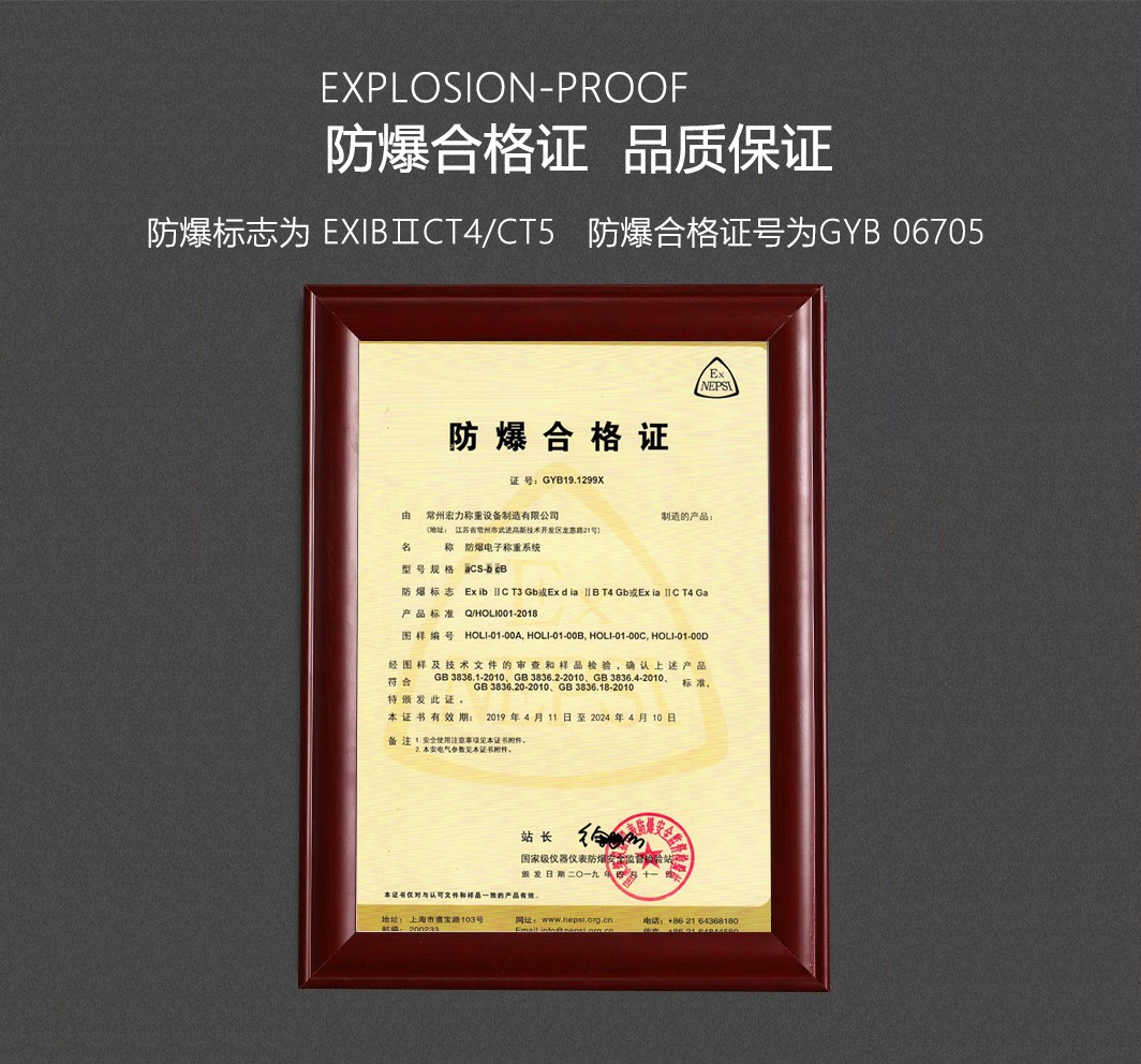 本产品属本质安全型电子称重设备,适用于爆炸性物质和危险场所的称重计量,整机设备(包括秤台、传感器、称重仪表)均可置于易爆危险区。